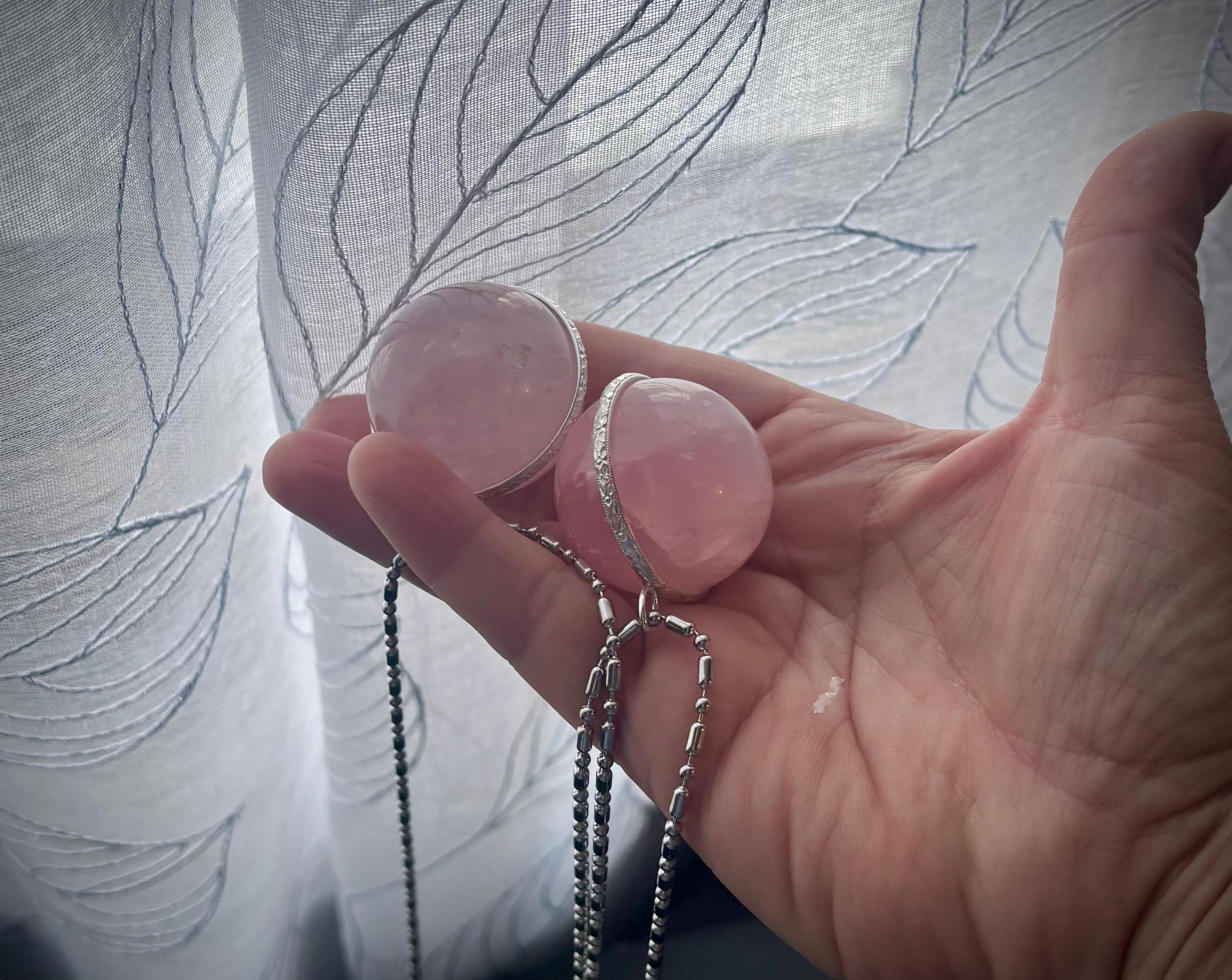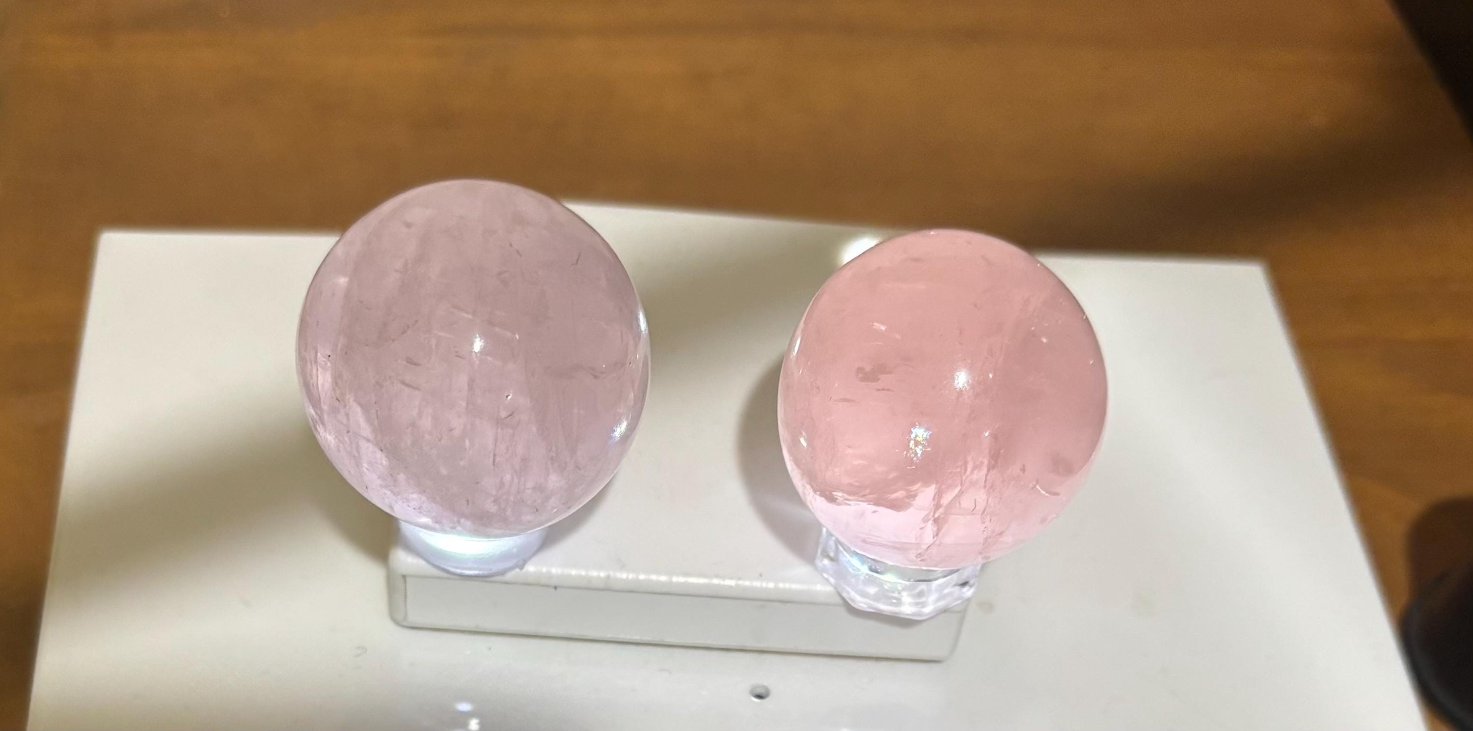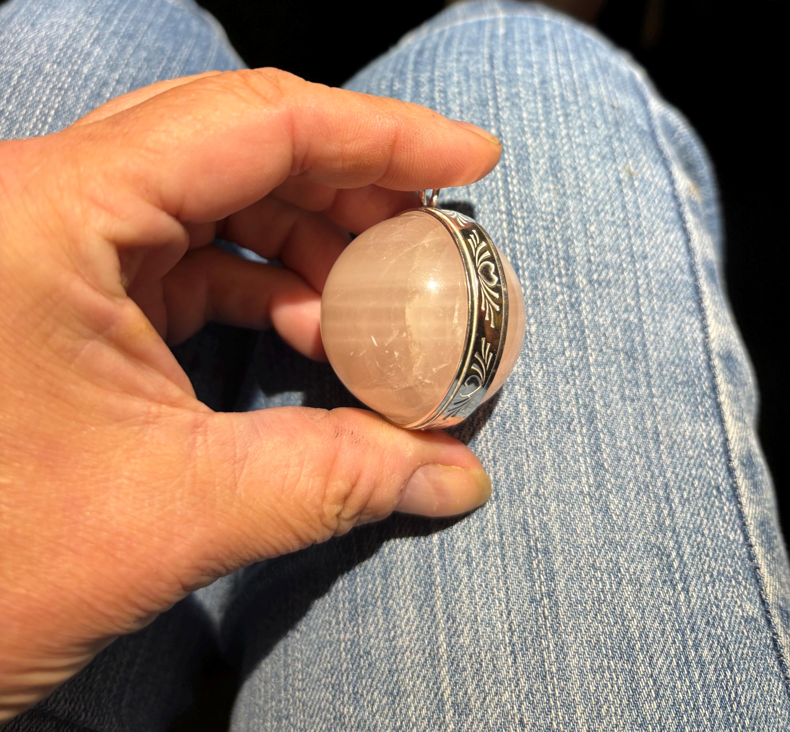 This is my largest Sphere Pendant 30- 35mm round Jelly Pink Rose Quartz Sphere Gemstone Necklace. I have 8 other light pink rose quartz orbs genuine earth mine crystal if you prefer shown unmounted.