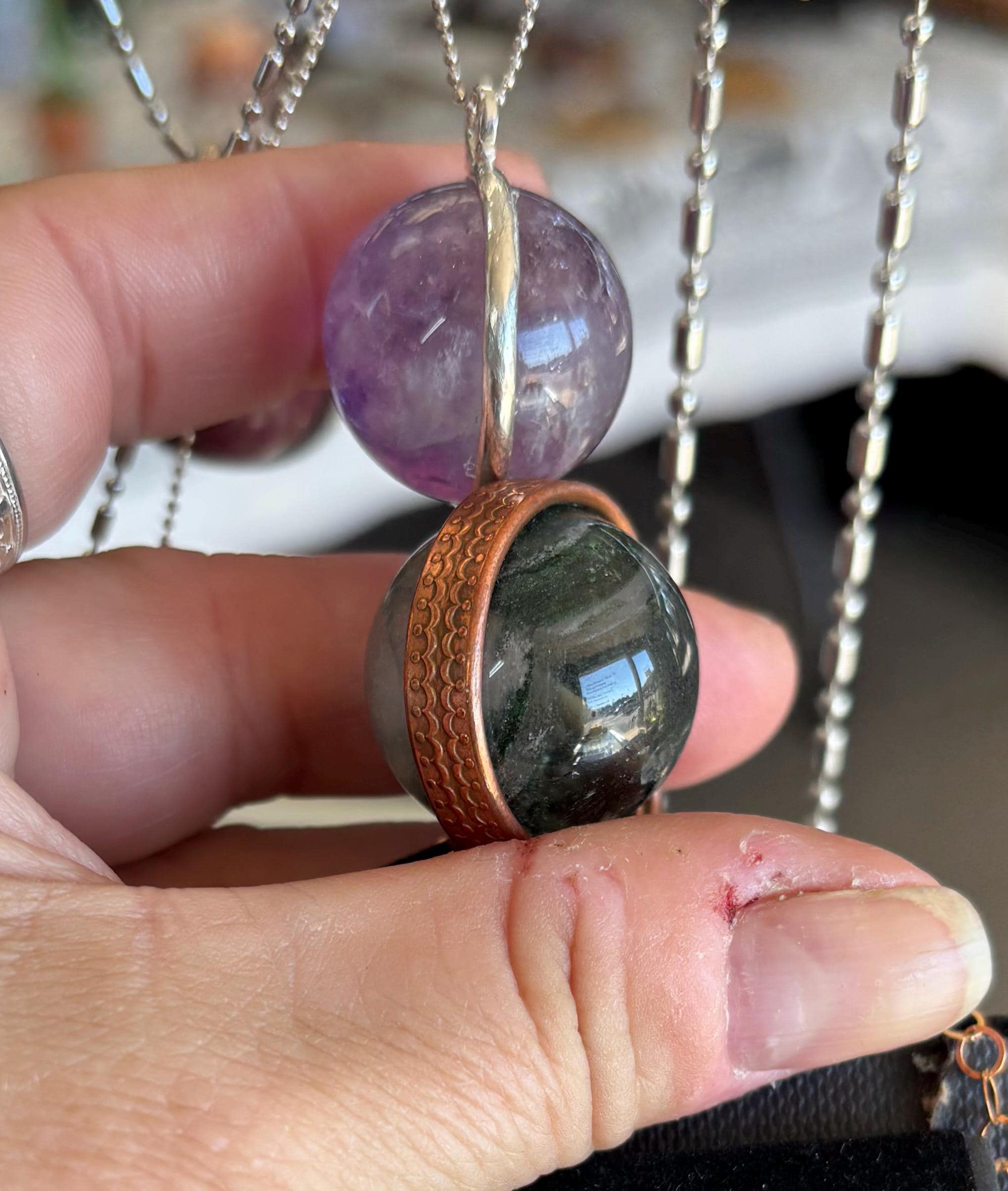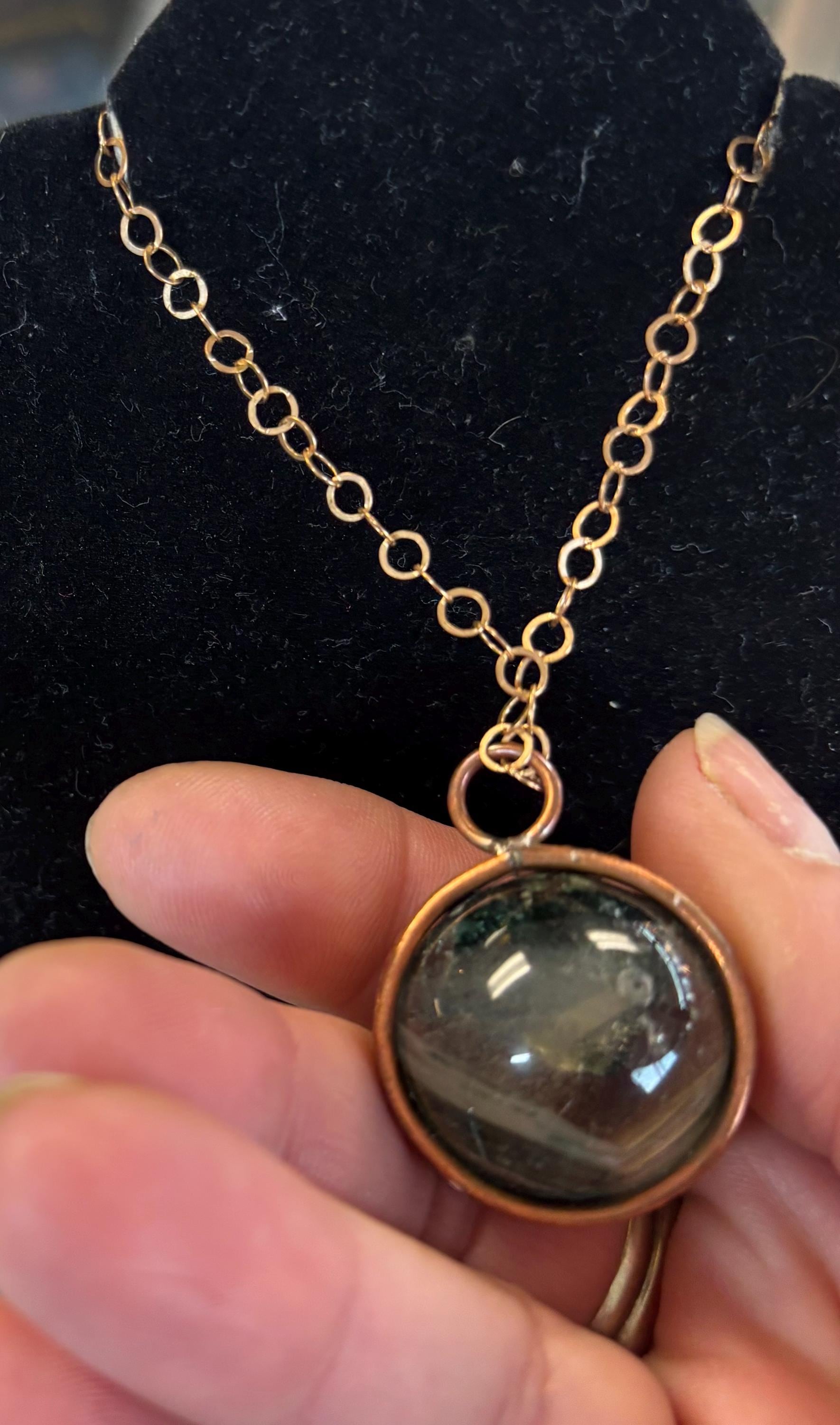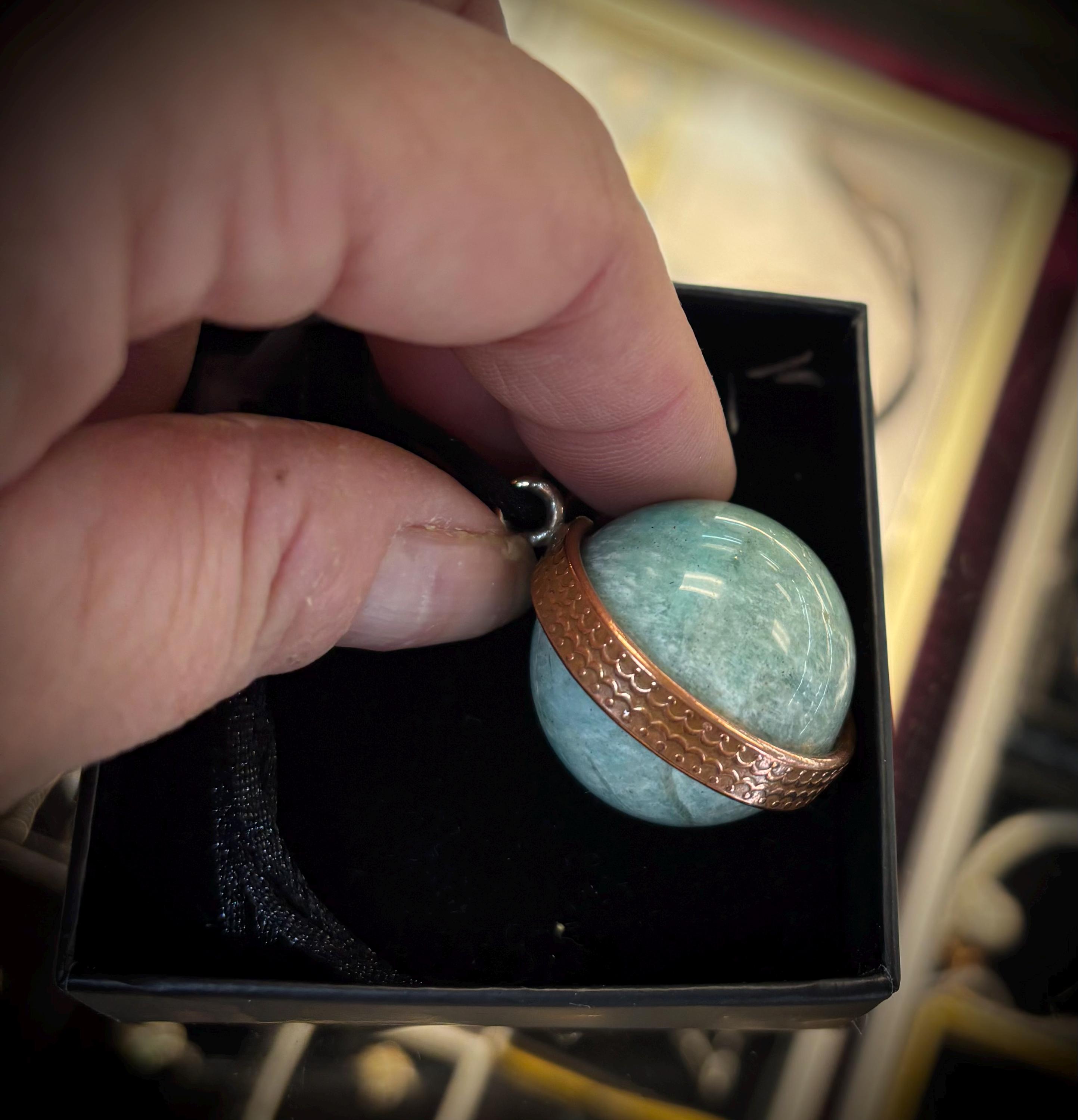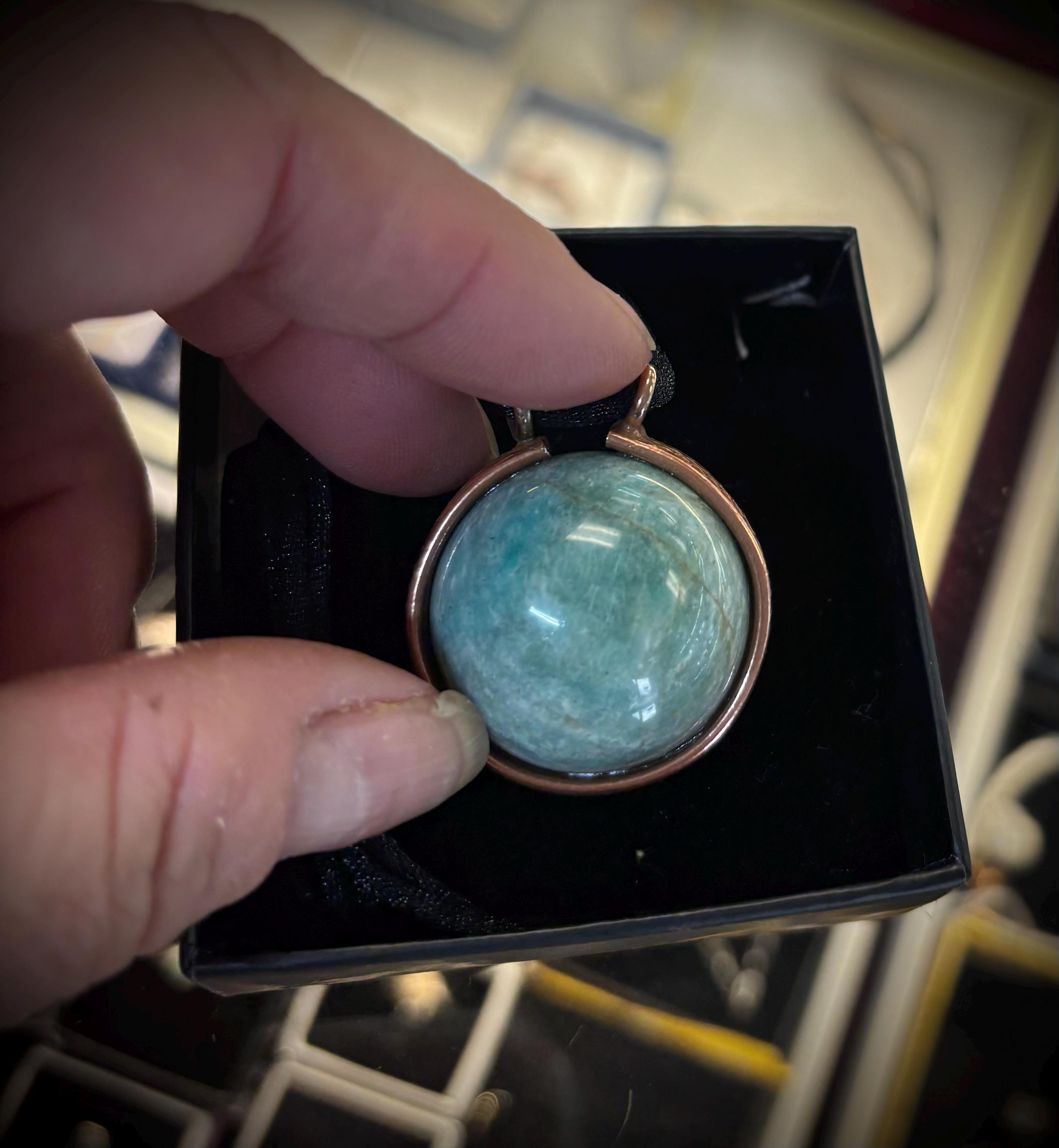Genuine Gemstone orbs handmade gypsy Pendant Necklace. Enjoy the incredible soothing metaphysical properties of natural stones set in healing copper. Approximately 25mm crystal ball.
