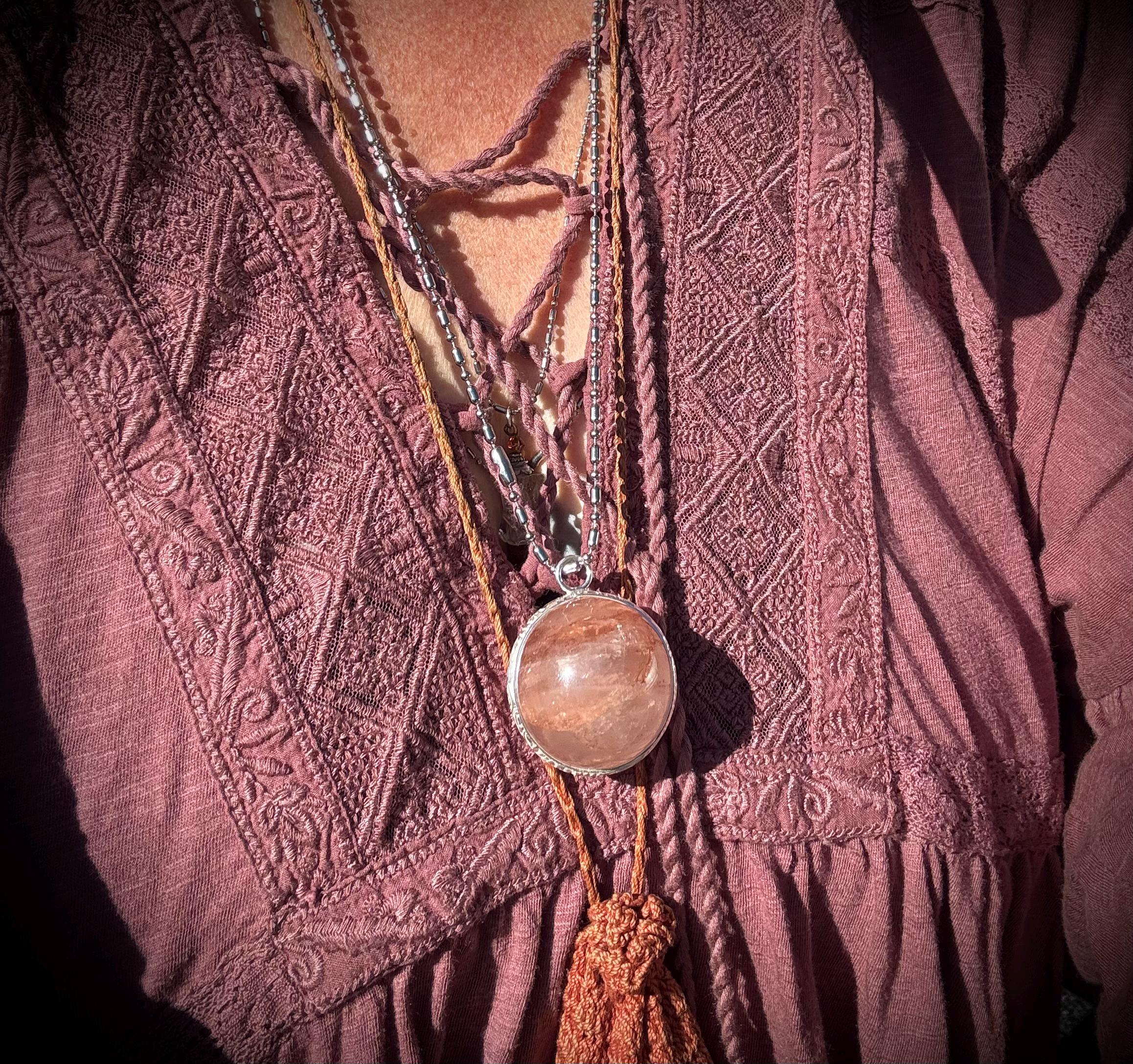 Handmade pendant is unique no two alike as these are natural Quartz rock crystal cut into spheres. Some are translucent while others have lots of inclusions or “stuff” inside.